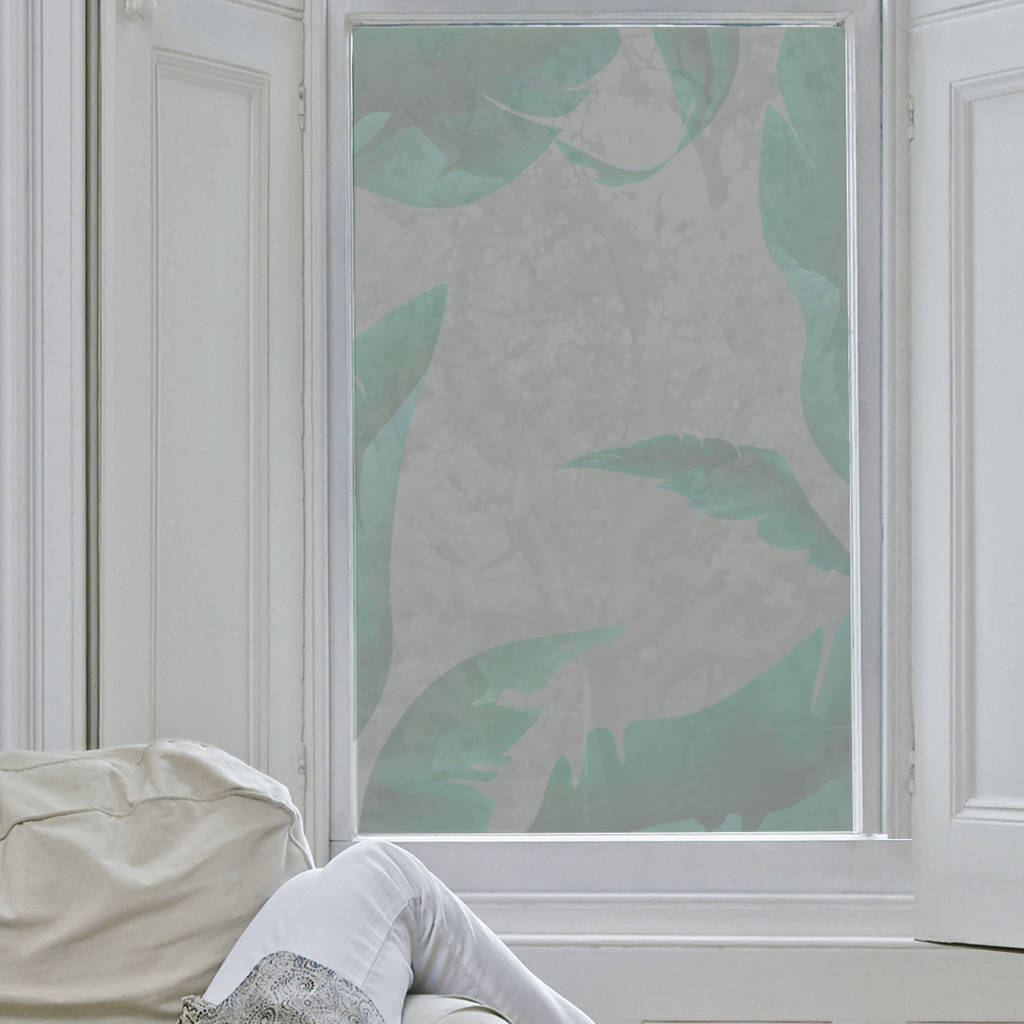 Nutmeg's tropical leaves frosted window film is ideal for security and privacy whilst still letting in natural light.