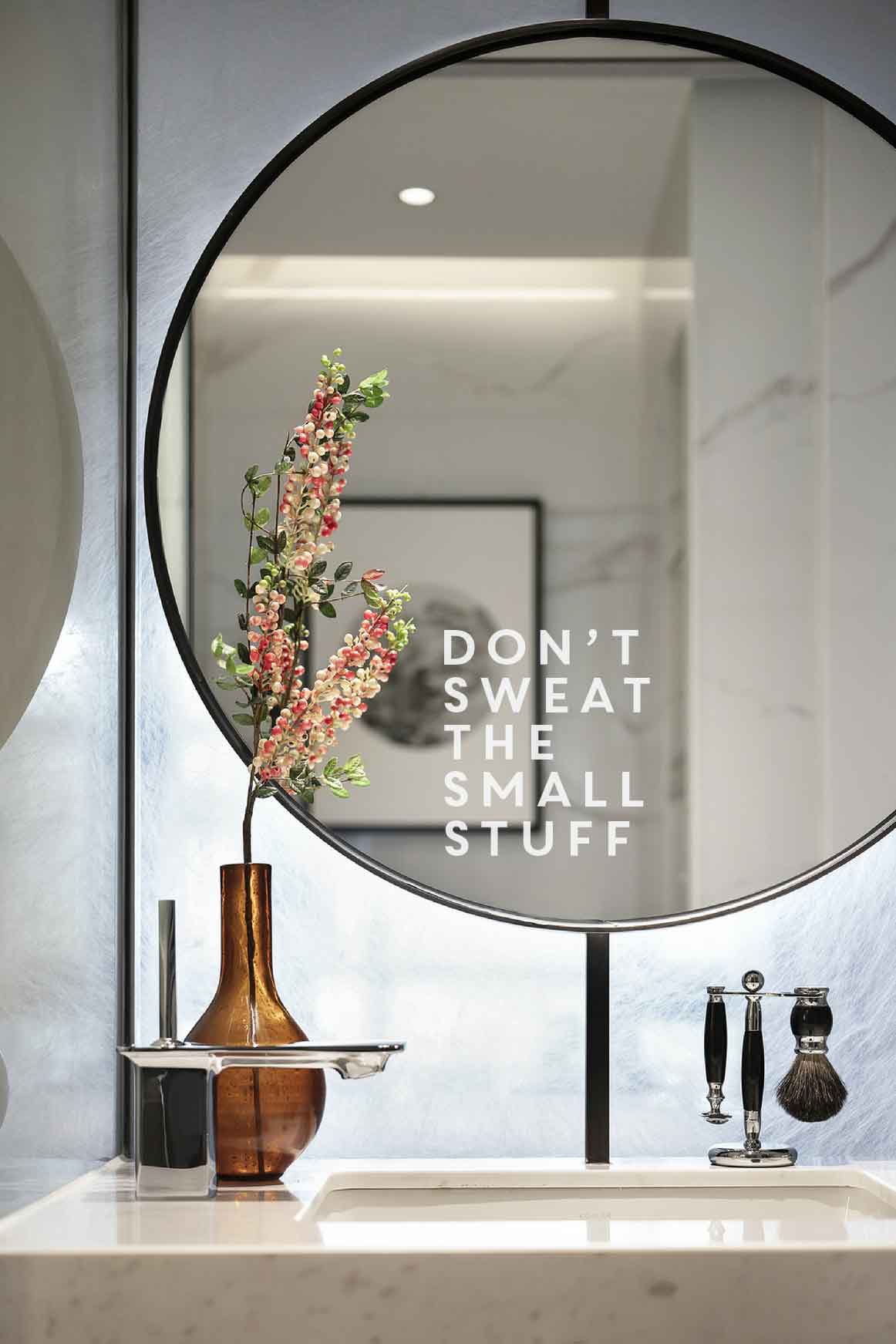 Add a daily dose of perspective to your routine with our “Don’t Sweat the Small Stuff” mirror sticker decal.