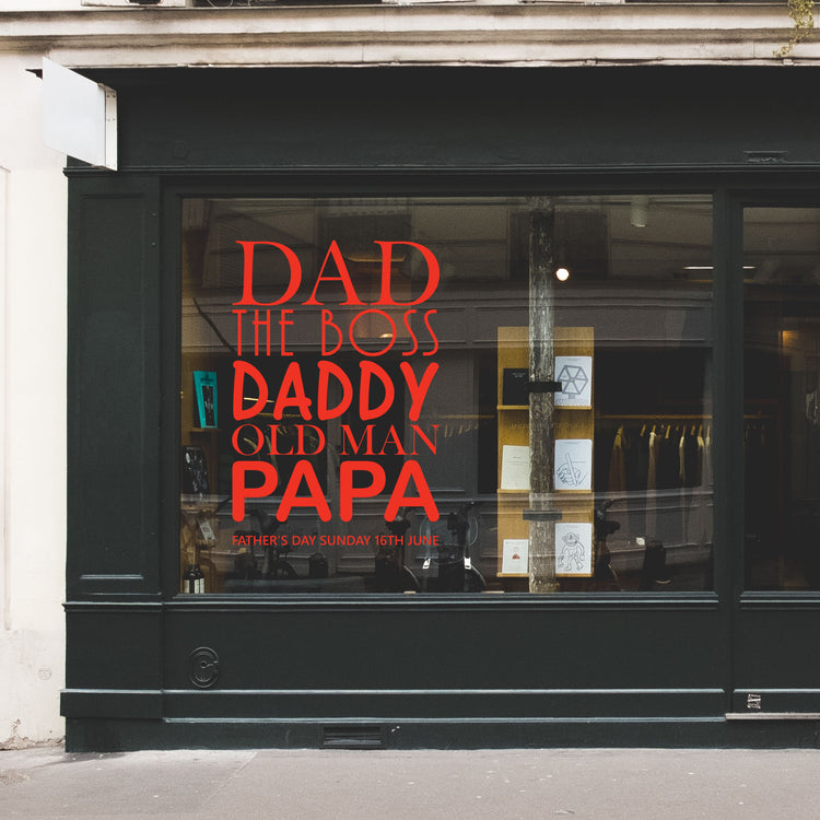 Dad, Daddy, Papa Father's Day Retail Shop Window Sticker Vinyl