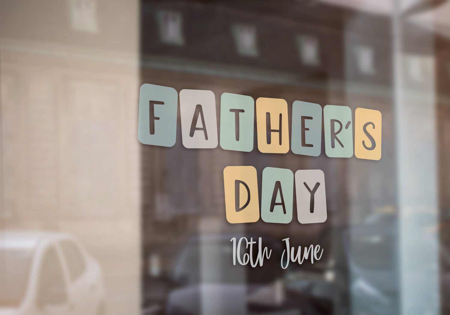 Father's Day Blockretail shop window sticker vinyl featuring the date.