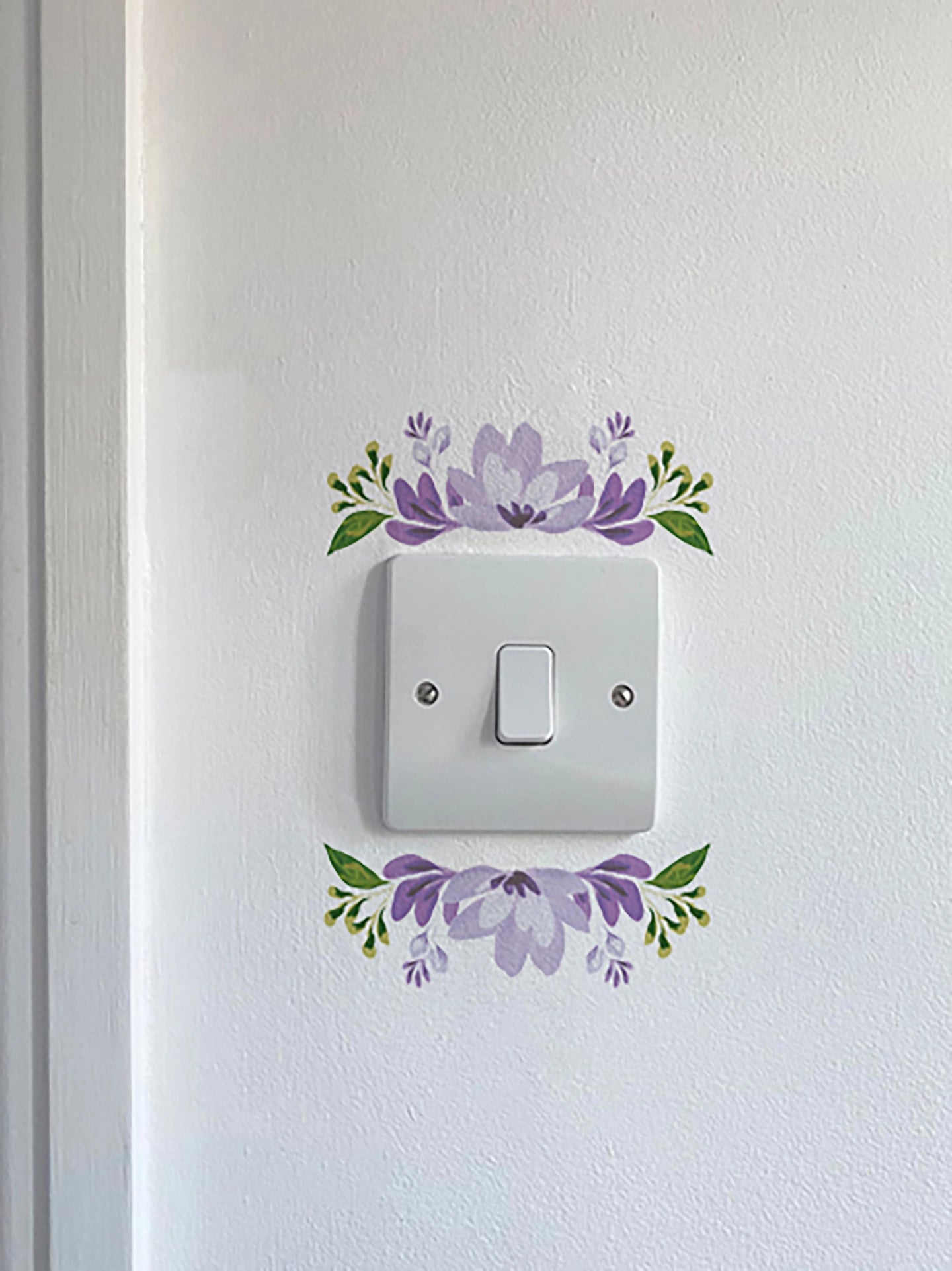 Designed to enhance the look of any room, this high-quality vinyl decal features a delicate floral design that beautifully frames light switches, creating a charming and sophisticated accent.