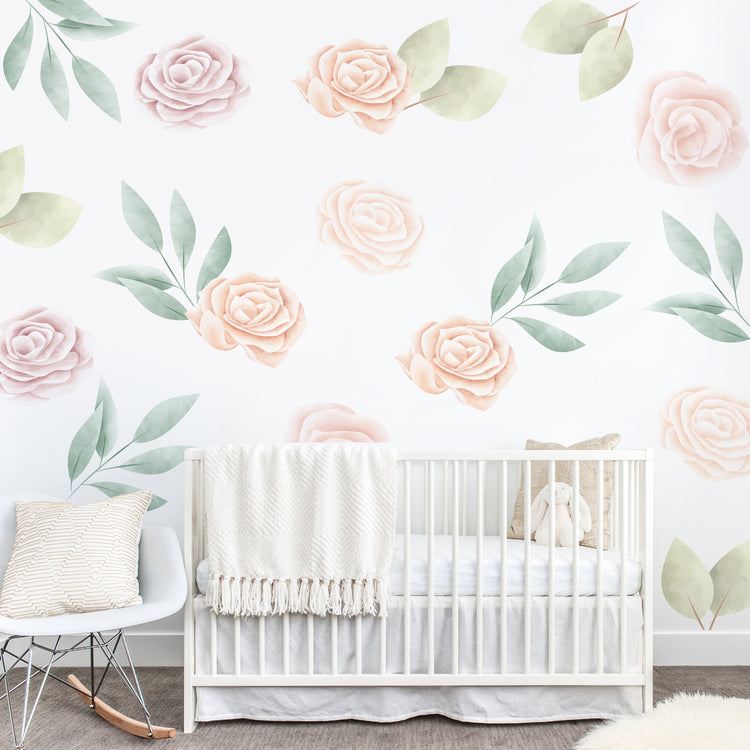 Rose floral wall sticker mural. Create instant impact and a beautiful feature in your home decor.