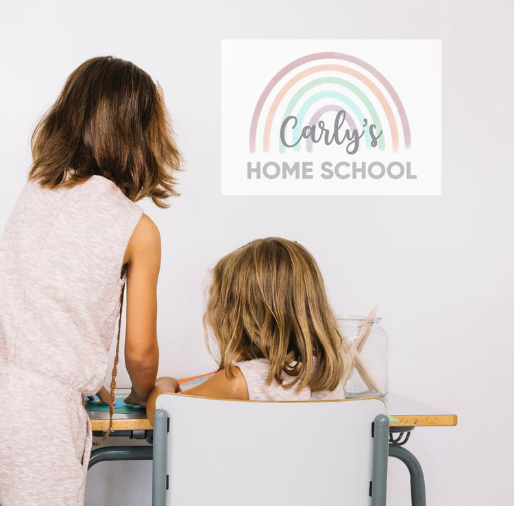 Add a name or two to this personalised homeschool A3 poster featuring a bright rainbow.