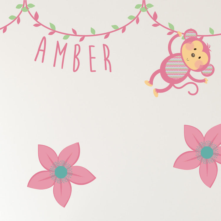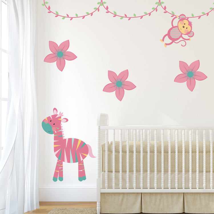 Pink Jungle Animal Wall Stickers