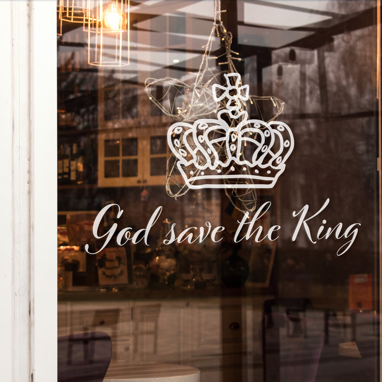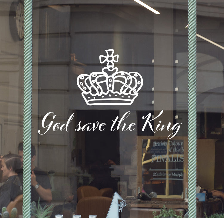 "God save the King" Kings Coronation Retail Window Sticker Vinyl