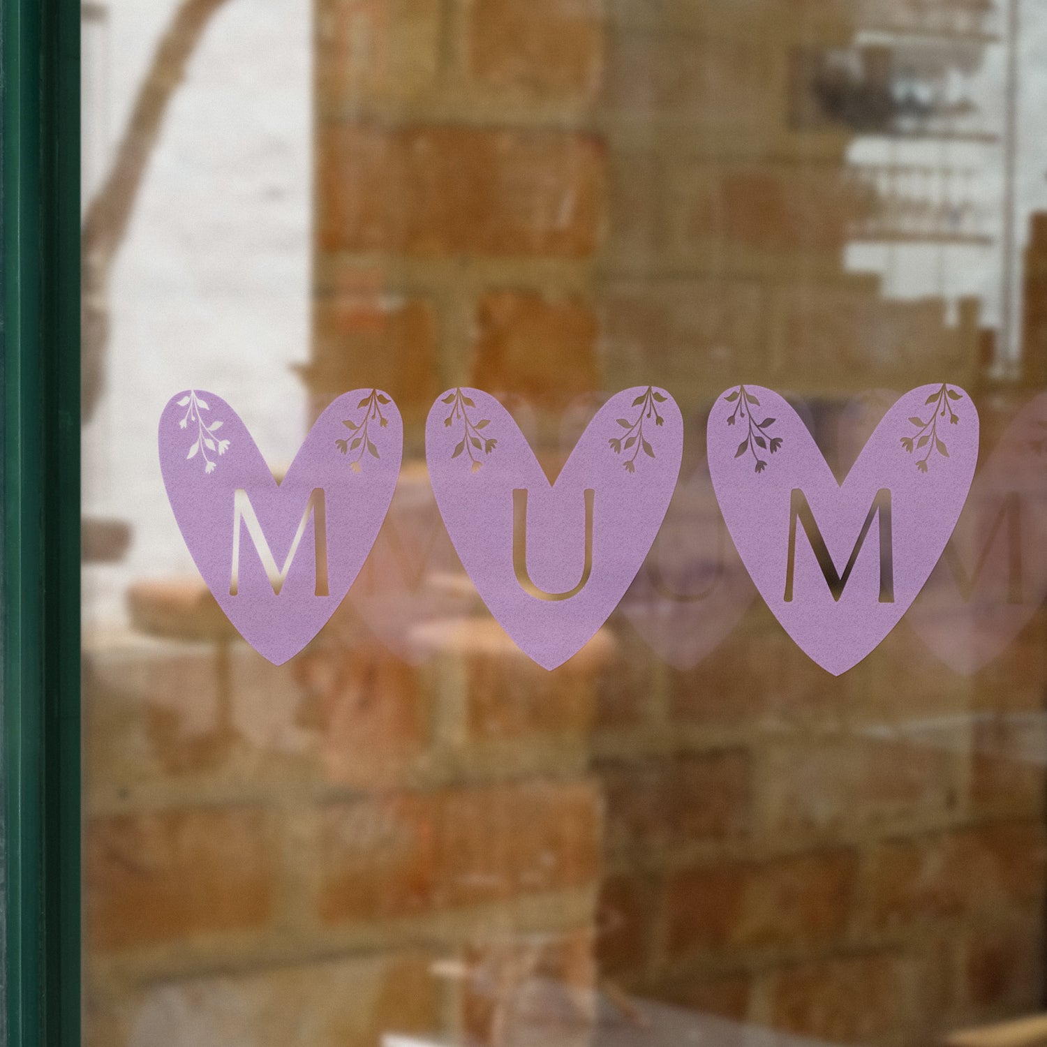 Mum Hearts With Flowers Retail Shop Window Sticker Vinyl