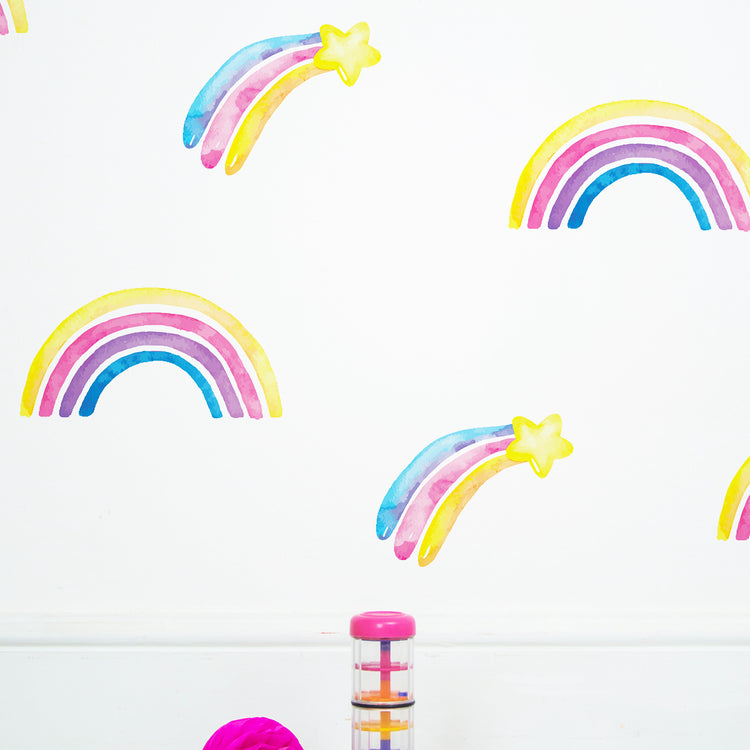 Bright rainbow wall stickers - ideal for decorating a baby's nursery, children's bedroom or playroom.