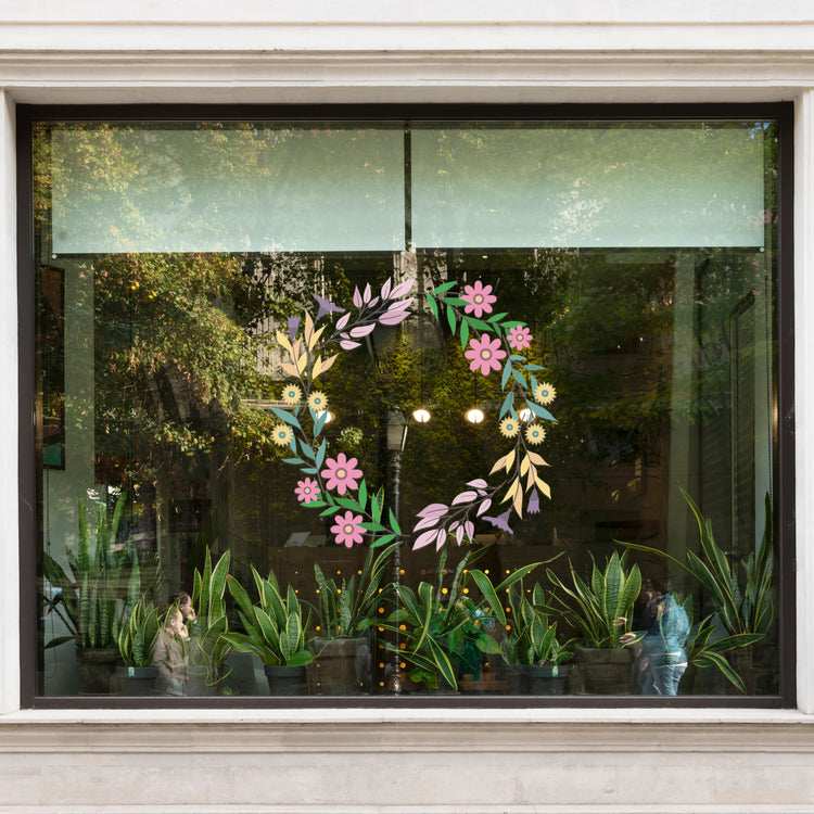 Spring Wreath Retail Shop Window Sticker Vinyl.
