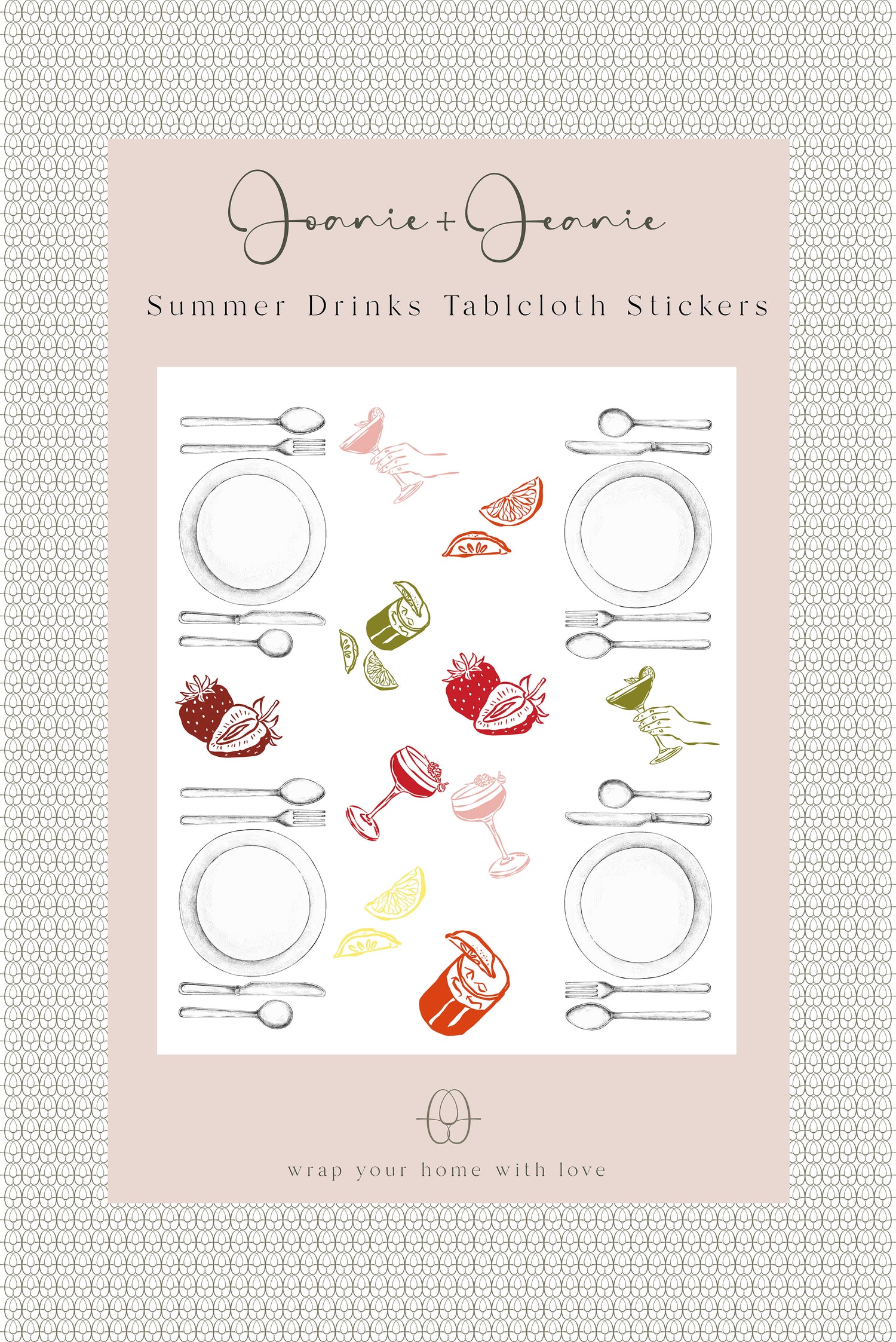 Whether you're mixing up mocktails for a backyard bash or crafting the perfect cocktails for a sunset soirée, our Joanie & Jeanie - summer drinks tablecloth stickers add a splash of fun and flair to your summer spread.