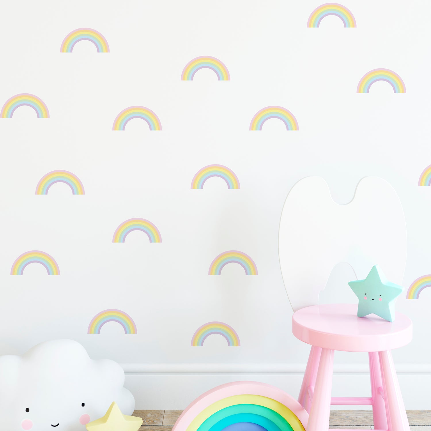 Pastel rainbow wall stickers - ideal for decorating a baby's nursery, children's bedroom or playroom.