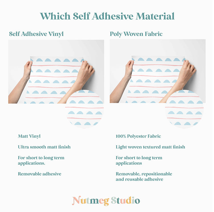 Printed onto either our removable multi - purpose matt self adhesive vinyl or our easiest to apply, a textured poly-woven material that will not crease or rip when installing and is also reusable.