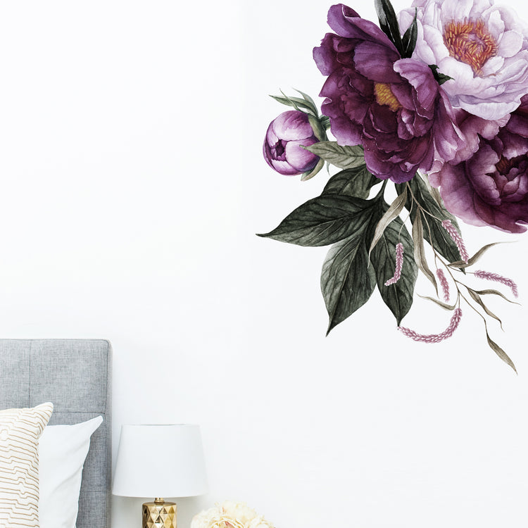 Nutmeg's beautifully designed rich plum peonies floral wall stickers are a stylish modern way to decorate any room in your home.