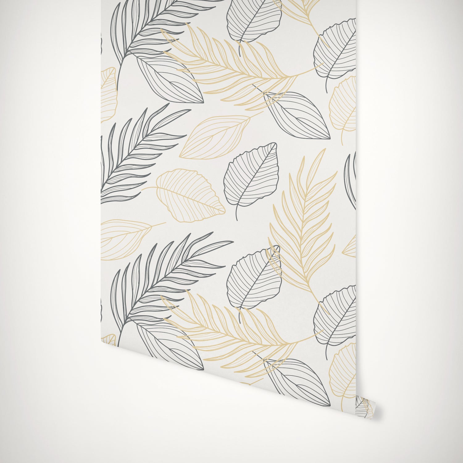 Gold And Black Palm Leaves Self Adhesive Wallpaper
