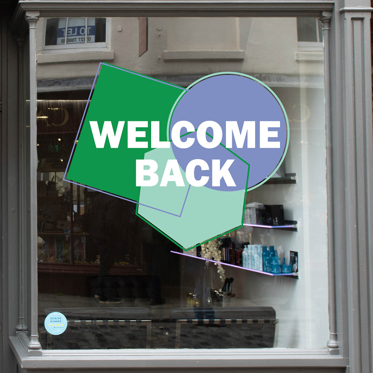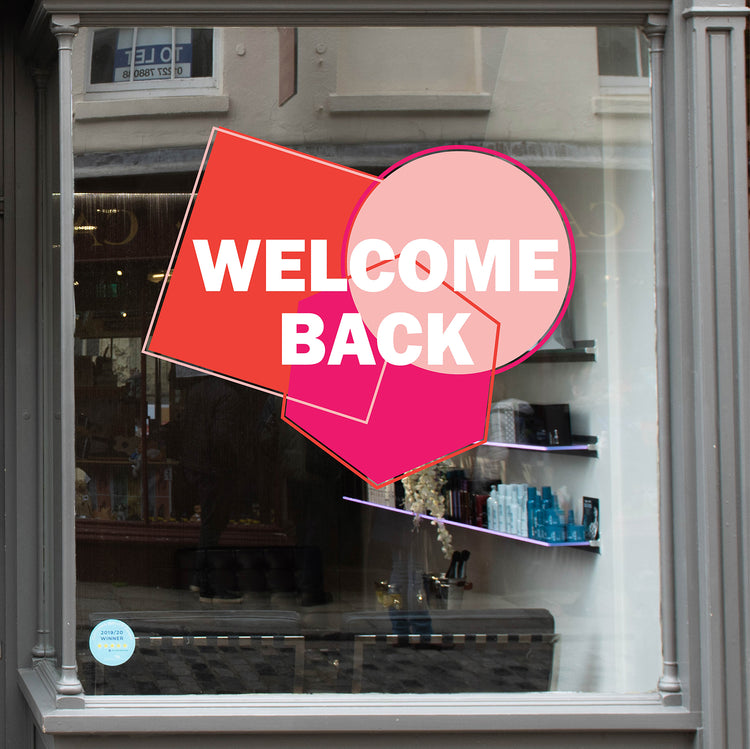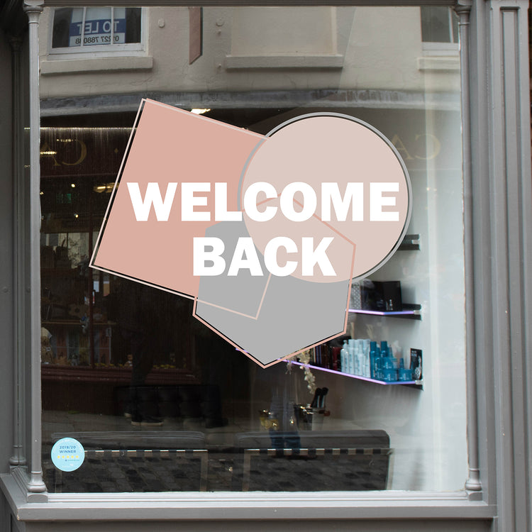 'Welcome Back' geometric shapes retail graphic window vinyl.