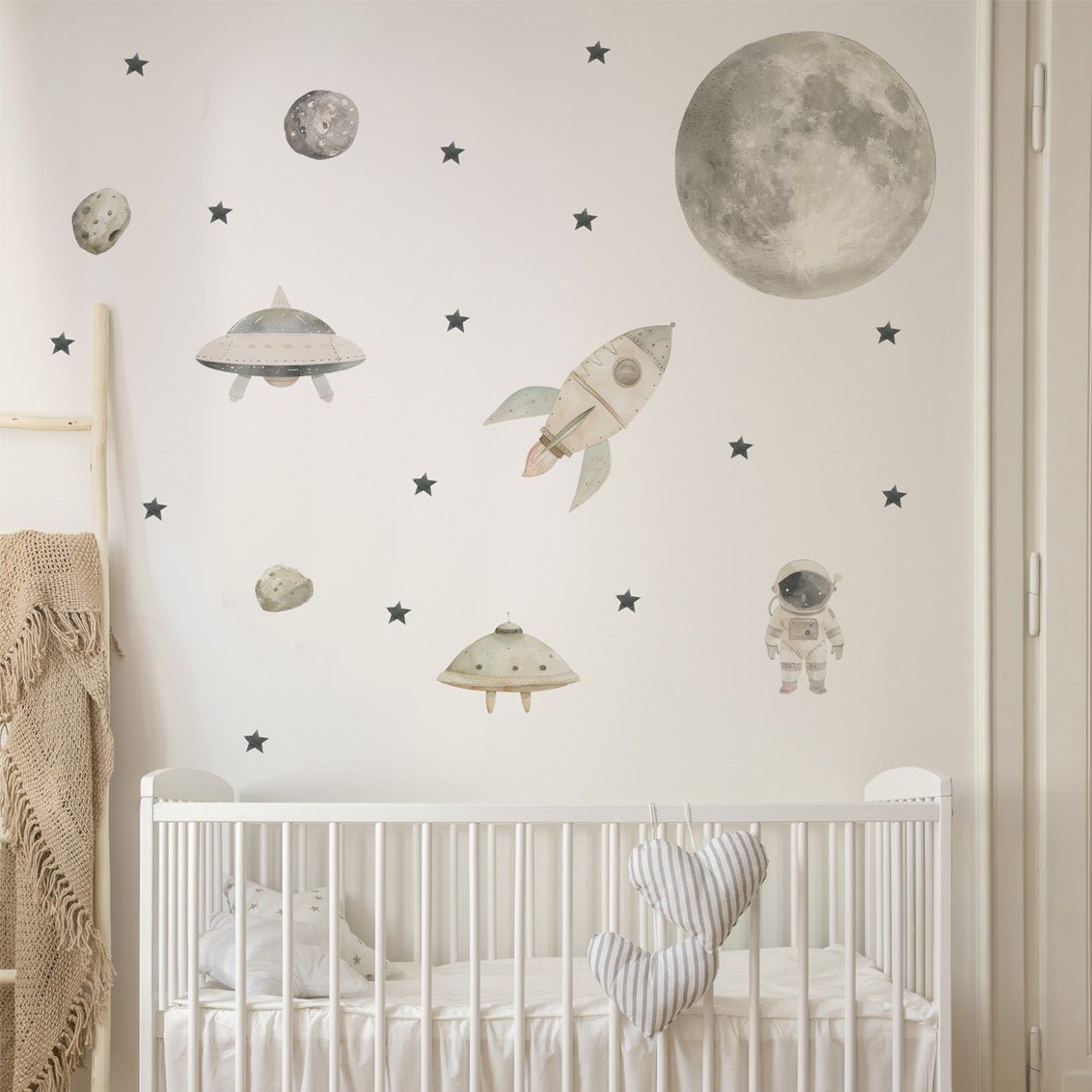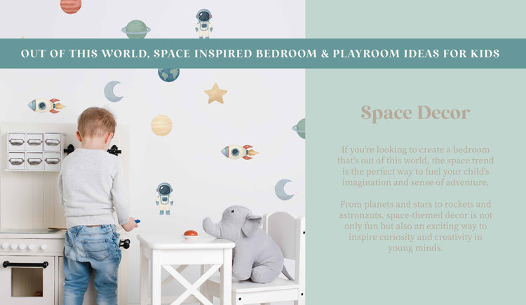 Adorn your walls with colourful planets. rockets & astronauts that inspire dreams of far-off worlds and galaxies. Each sticker is crafted to capture the beauty of our solar system, making it easy to create a mini-universe in your child’s room.
