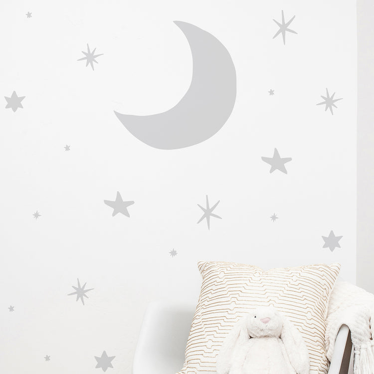 Create a magical, dreamy feel in any room with this moon and stars nursery inspired wall sticker - a stylish, modern way to decorate a room or carry out a room makeover, without the mess!