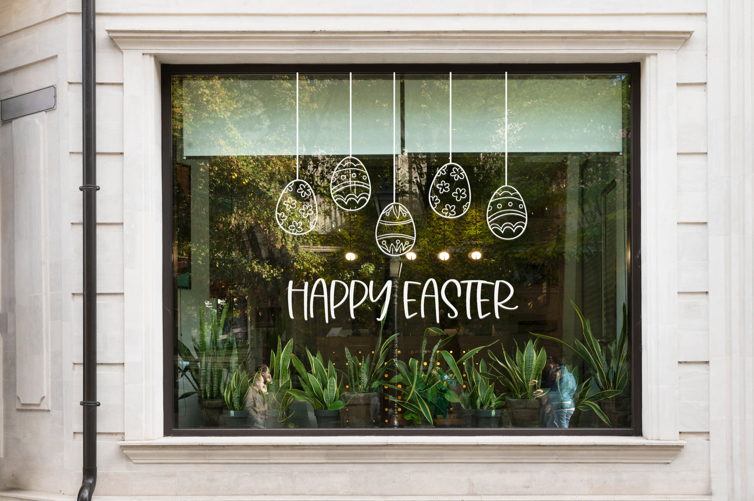 Hand-Drawn Happy Easter Eggs Window Retail Vinyl