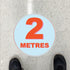 Hello again 2 metres social distancing floor graphic in a circular design.