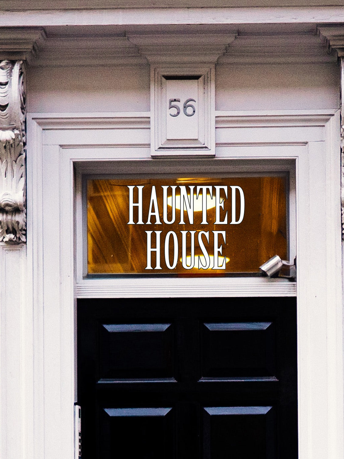 Transform any space into a haunted scene with our Joanie & Jeanie - Haunted House Wall & Door Sticker!