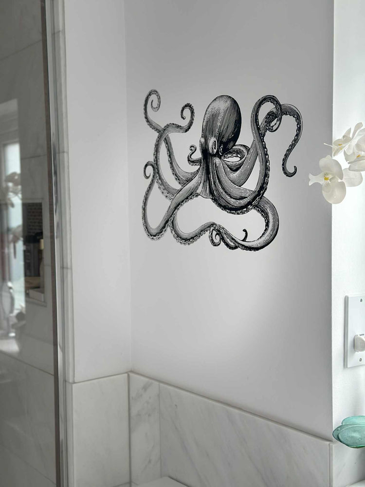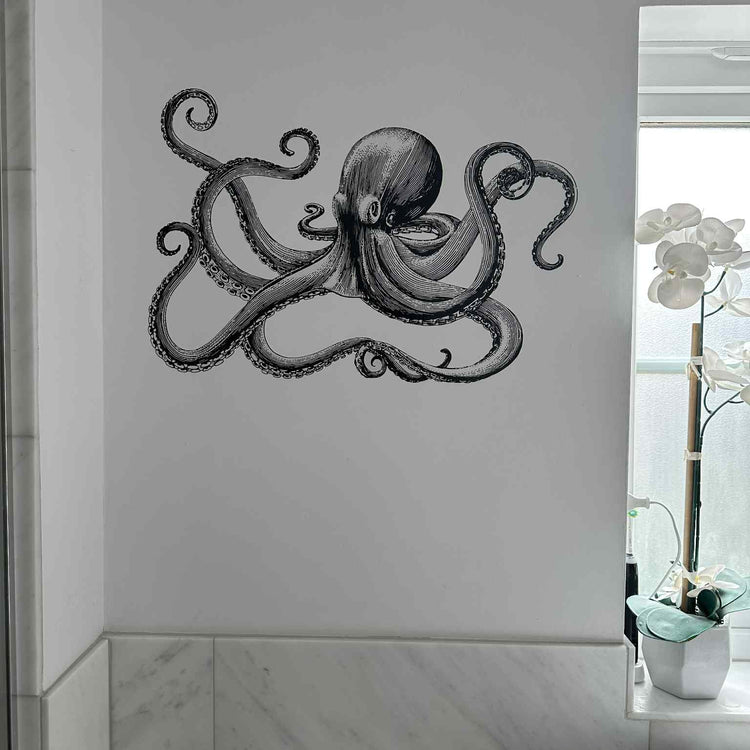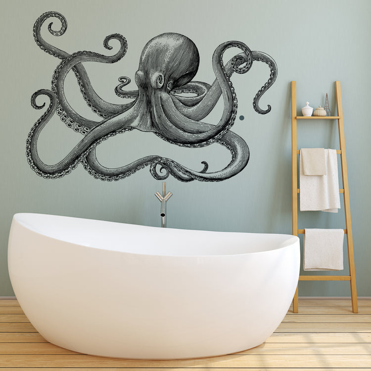 Whether you're decorating a bathroom, bedroom, nursery, or beach house, this intricately designed decal adds a bold nautical touch with swirling tentacles and lifelike detail.
