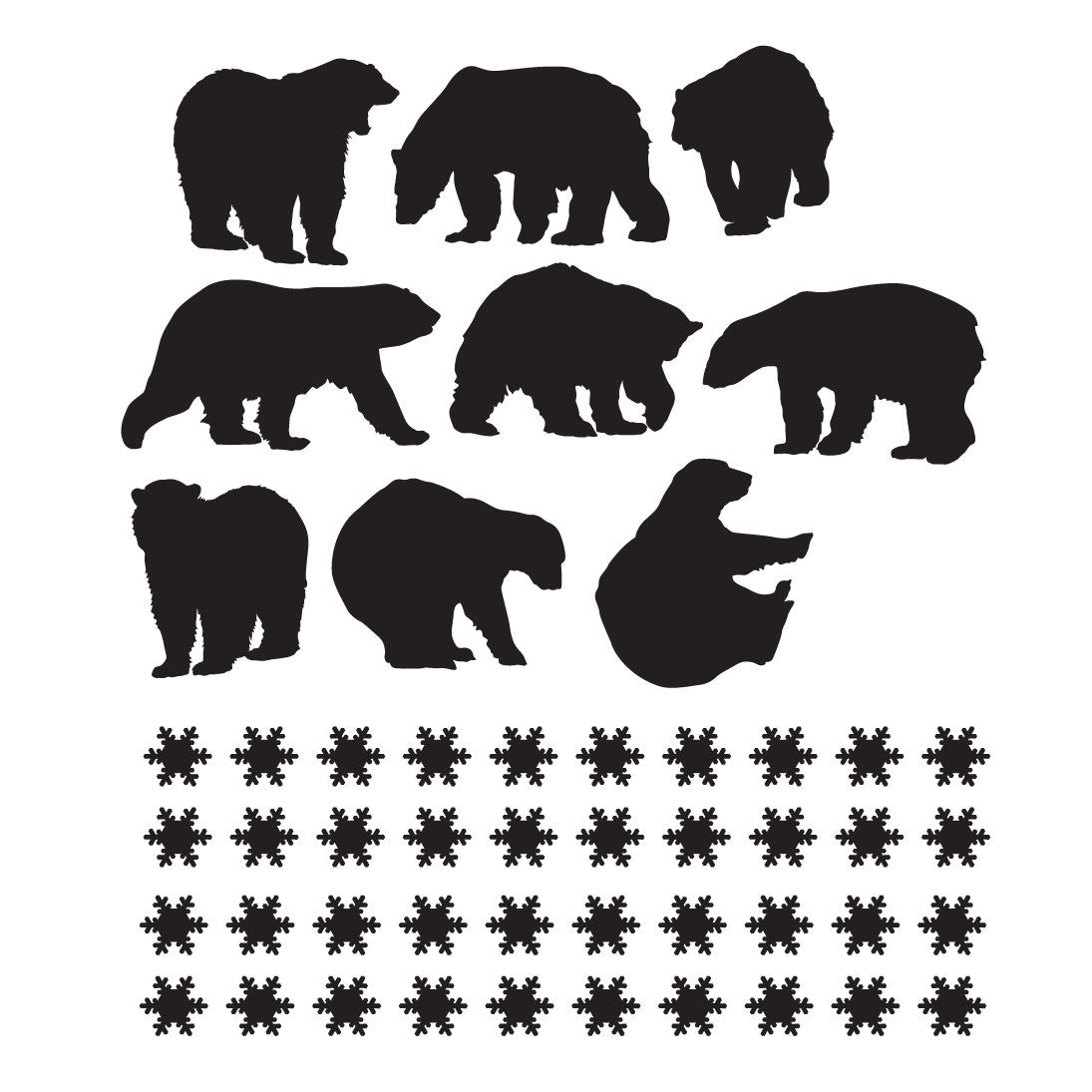 Set of 9 Polar Bears and mini snowflakes window and wall stickers.