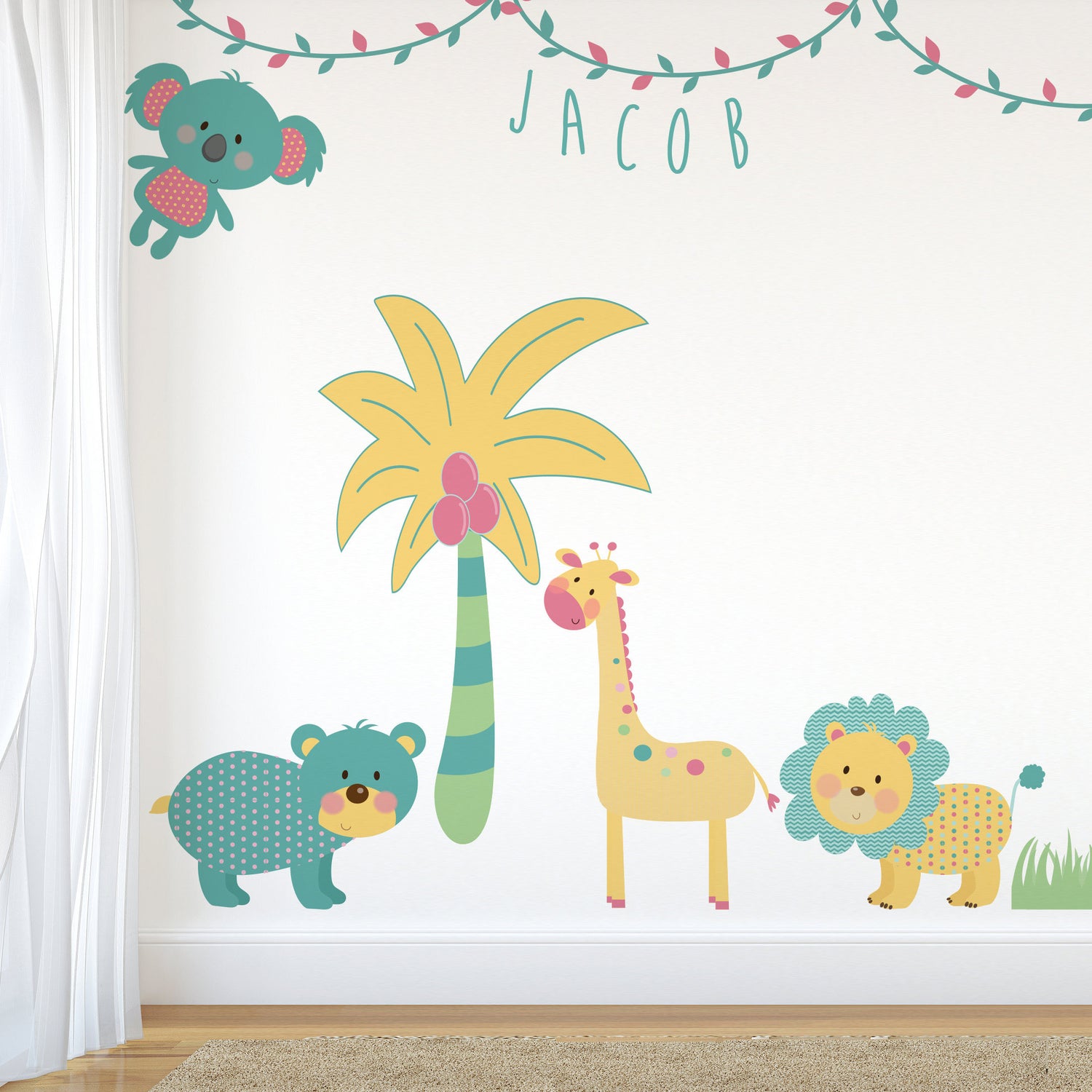 Turquoise Jungle Animal Wall Stickers