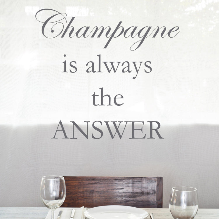 Champagne is always the answer. A perfect wall sticker for a romantic couple or the perfect wedding gift for that special couple.