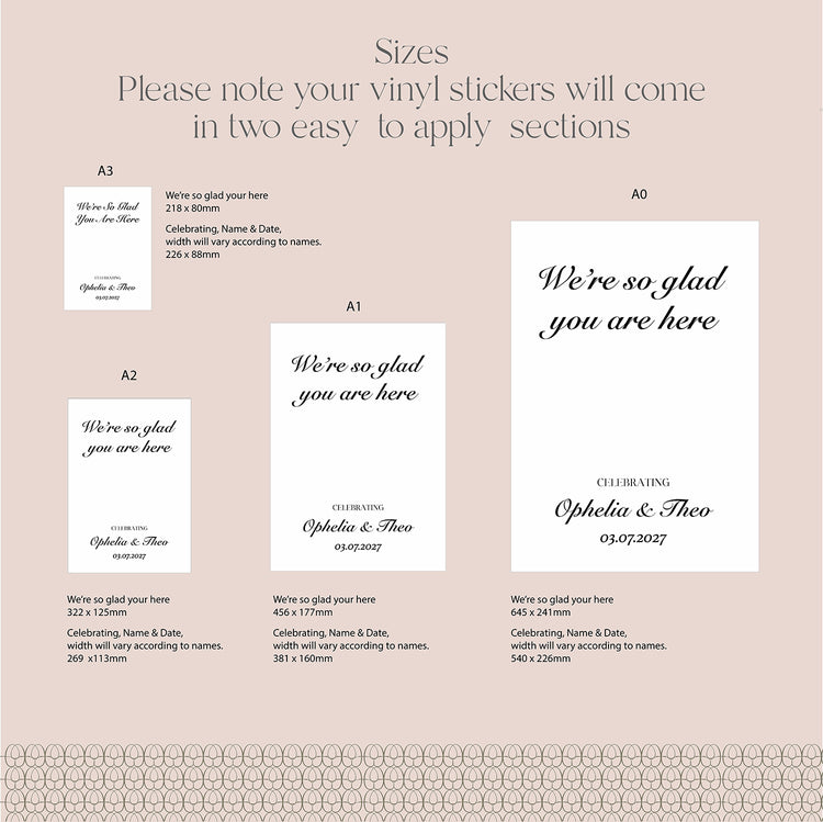 We're so glad you are here Wedding Vinyl Lettering for Mirrors and Signs