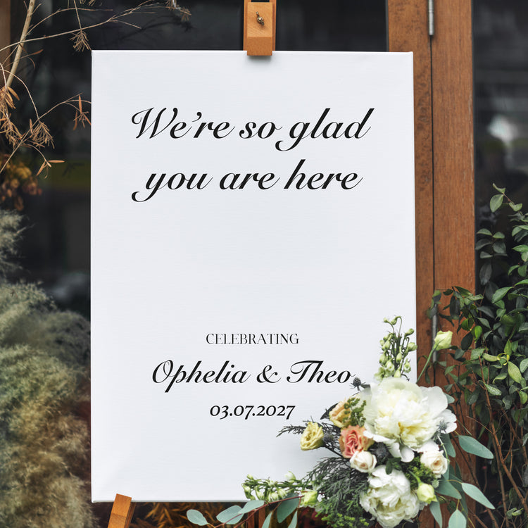 We're so glad you are here Vinyl Lettering is the perfect addition to your wedding decor.